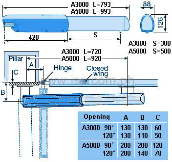 ATi motors have 300mm or 500mm stroke length. Motor speed and power are the same. The long stroke version may be necessary on large posts but be aware of the extra opening time.
